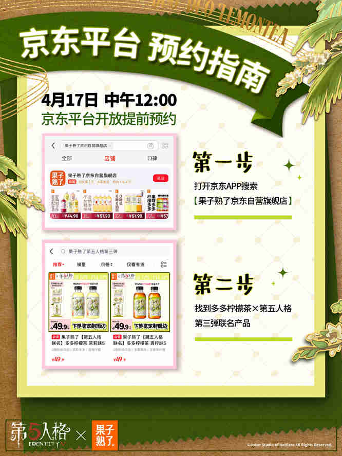 线上购物狂欢率先在京东平台引爆。4月24日中午12点起,京东果子熟了自营旗舰店将开启首发专场,购买联名款即可获赠气象学家【独特时装】-柠檬多多及联名周边。