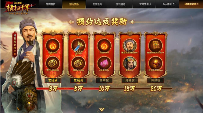 全服预约人数达标,所有预约主公皆可领取对应奖励,奖励可累计叠加: